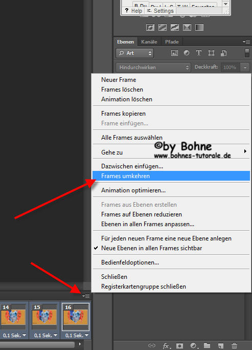 47) nun den ersten Frame aktivieren und in der Ebenenpalette alles so schalten das nur der Hintergrund,