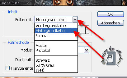 8) über-> Bearbeiten-> Flasche füllen-> mit Hintergrundfarbe (Umschalt+F5)