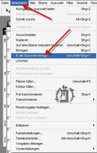 kopieren. Zurück zu unserem Herz und hier über Bearbeiten-> in die Auswahl einfügen (Umschalt+Strg+V)