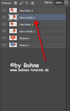 32) wir duplizieren beide Herzebene und benennen sie mit Herz links2 und Herz rechts2