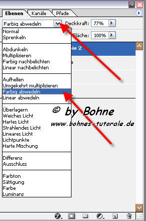 die Füllmethode auf Farbig abwedeln und stellen die Deckkraft auf 77%