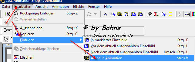 23) Starte deinen Anishop, Bearbeiten -> Einfügen -> als neue Animation
