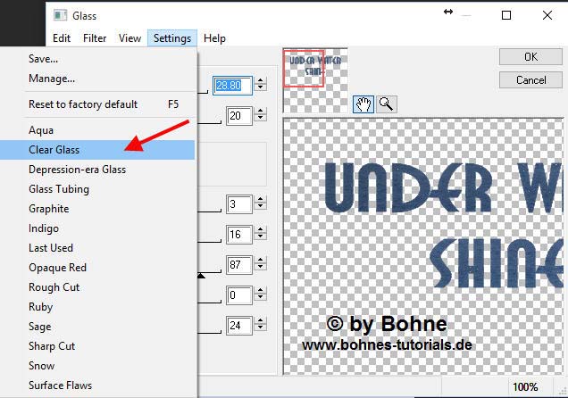 05) Effekte -> Plugins -> Eye Candy 4000 -> Glass