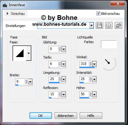 Effekte -> 3D Effekte -> Aussparung, dieses mal mit -4 bei V+H