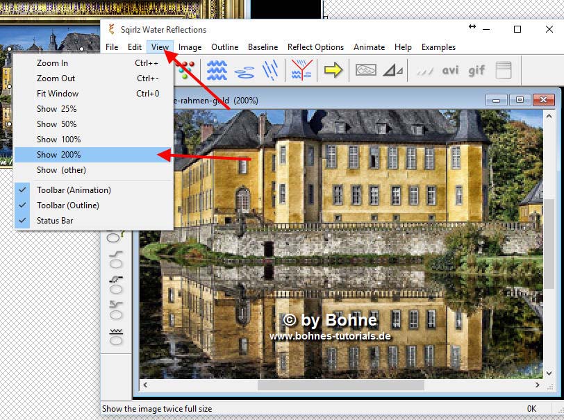 21) Klicke in der Menüleiste auf "View" und stelle eine Ansicht von 200% ein.
