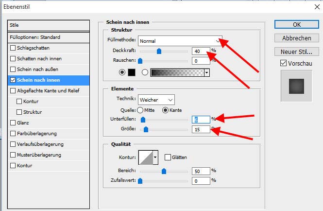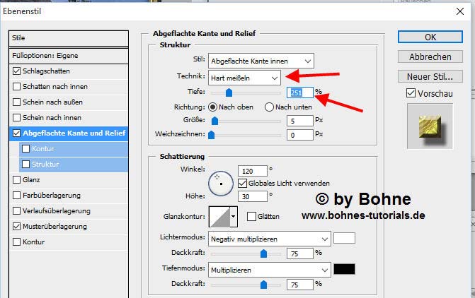 Ebenenstil hinzufügen "Abgeflachte Kante und Relief"