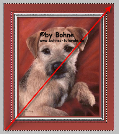 aktiviere den Rand mit dem Zauberstabwerkzeug, ziehe einen Verlaufswinkel von unten Links nach oben rechts auf