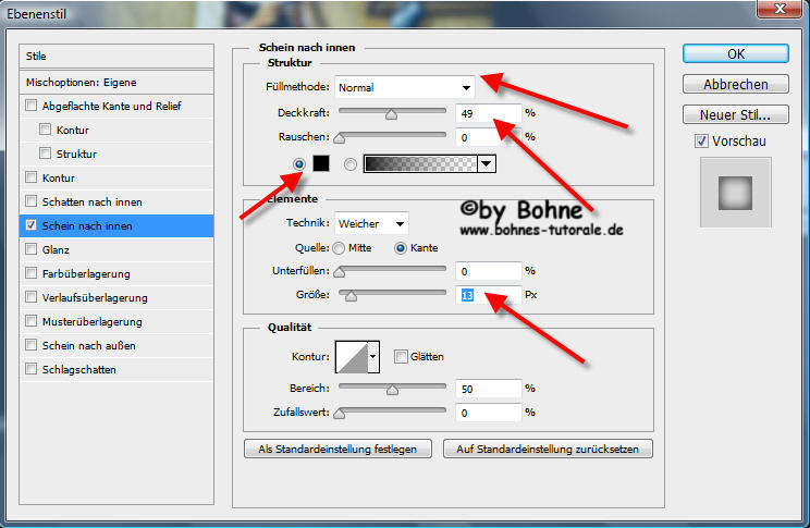 12) wiederhole Schritt 4-6, dann rechter Mausklick und Ebenenstil einfügen