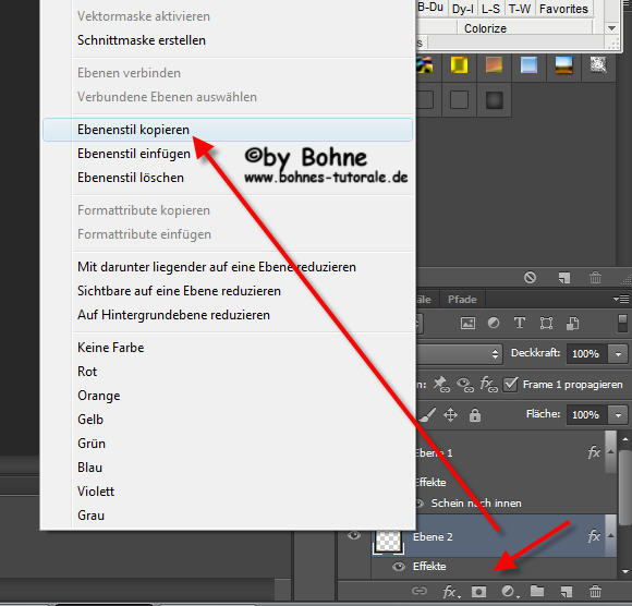 7) mit rechen Mausklick auf Effekte und Ebenenstil kopieren