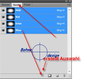 und den Blaukanal auf das erstellt Auswahl-Symbol ziehen
