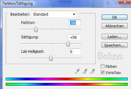17.Über Bild-> Anpassen-> Farbton/Sättigung