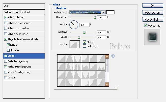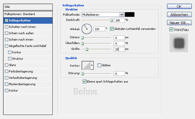 Schlagschatten mit folgenden Einstellungen