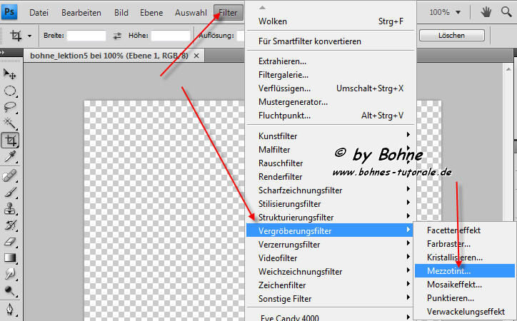 3) Nun noch auf Filter-> Vergröberungsfilter-> Mezzotint