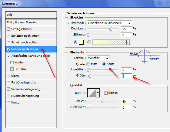 16. Ebenenstil hinzufügen-> Schein nach innen