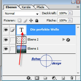 Ebenenpallete Klicken, so dass der Text nun ausgewählt wird