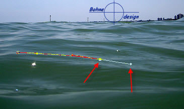 in Richtung des Wellenverlaufes ziehen