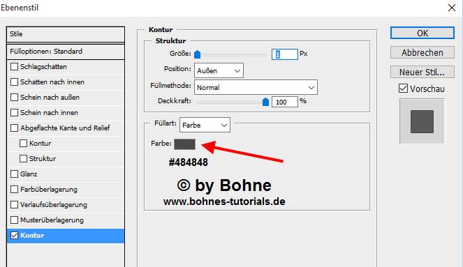 17) Ebenenstil Hinzufügen -> Kontur