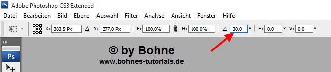 Mit Strg+T in den Transformationsmodus und um 30° drehen